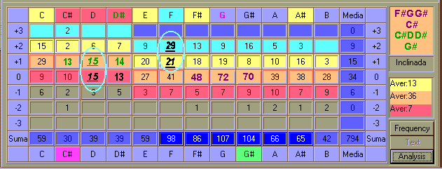 the totals than the 5 hits of the main octave and 10 hits in total of F#