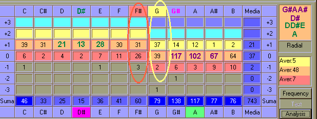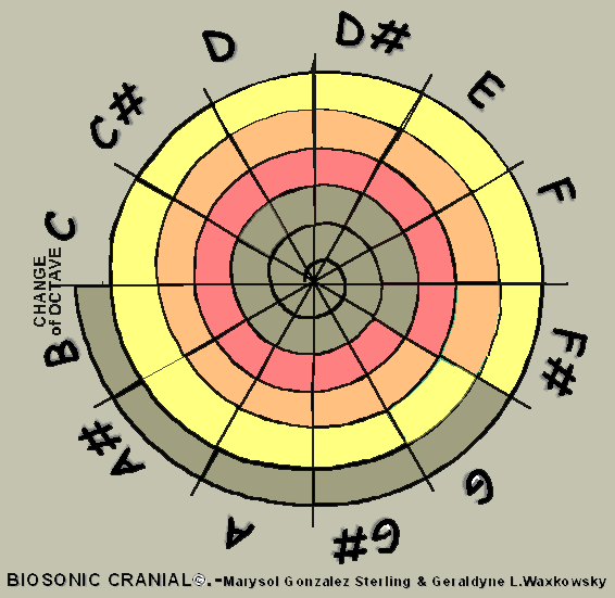 2./ LAS 12 NOTAS MUSICALES DIVIDEN MÁS O MENOS IGUALITARAMENTE EN UN MODELO YIN YANG DE 6 NOTAS DÉBILES O CARENTES Y 6 ESTRESADAS O ALTAS.