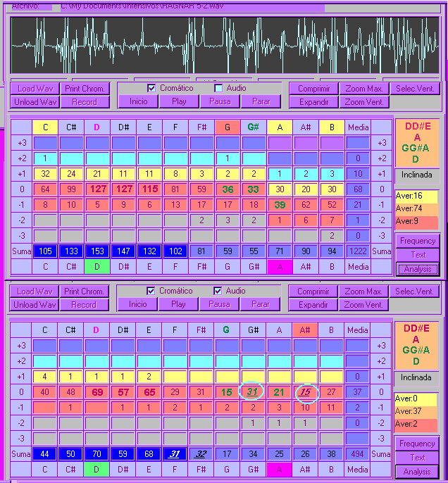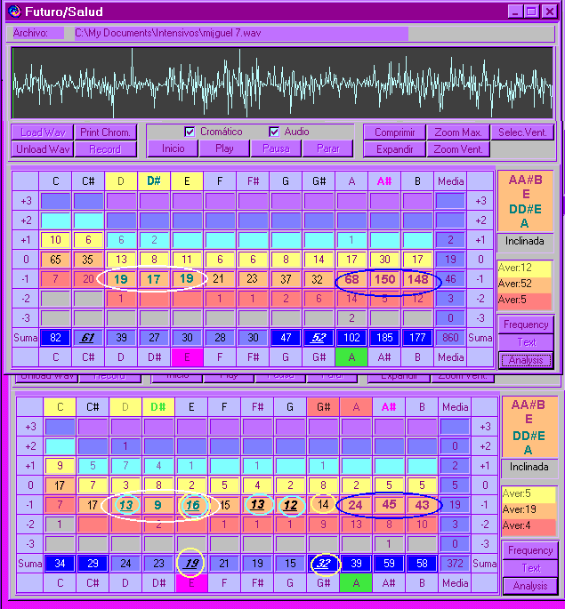 1./ LA VOZ COMPLETA UNA OCTAVA ENTERA DE C A B. Y HAY 3 OCTAVAS PRINCIPALES DE FRECUENCIAS FUNDAMENTALES. SÓLO UNO MUESTRA LAS FRECUENCIAS EN TODAS LAS 12 NOTAS.