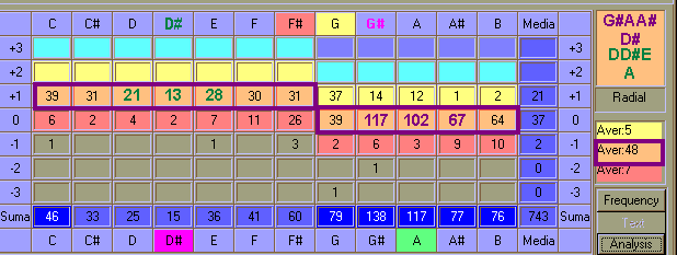 de las notas 3 más bajas de la espiral Yang, entretanto 15 de A#