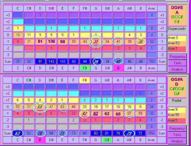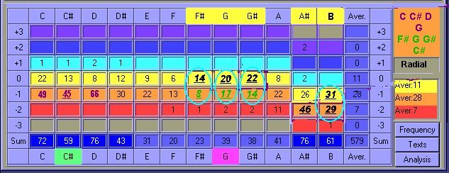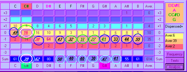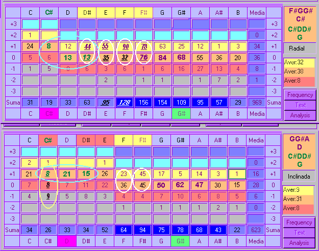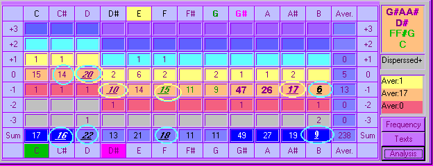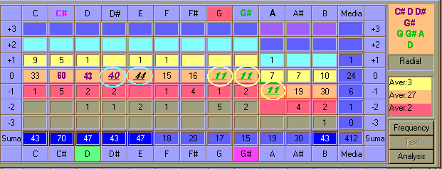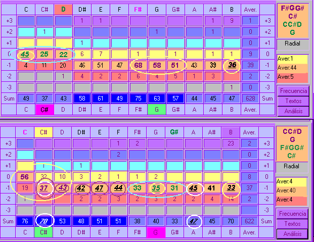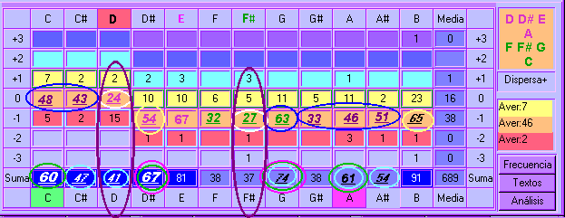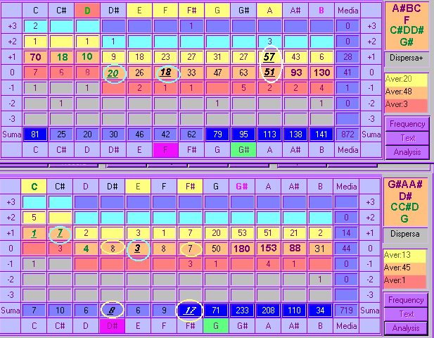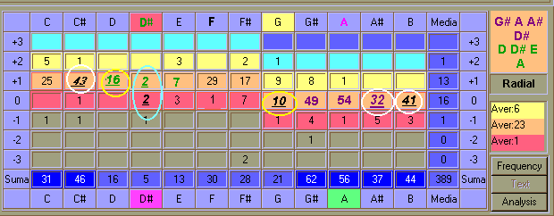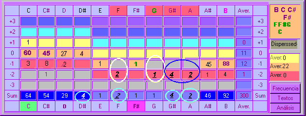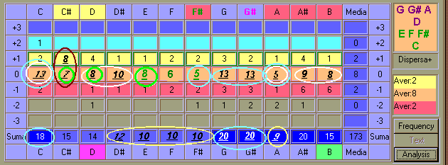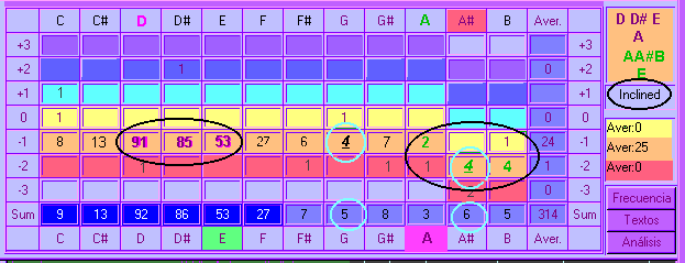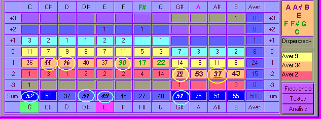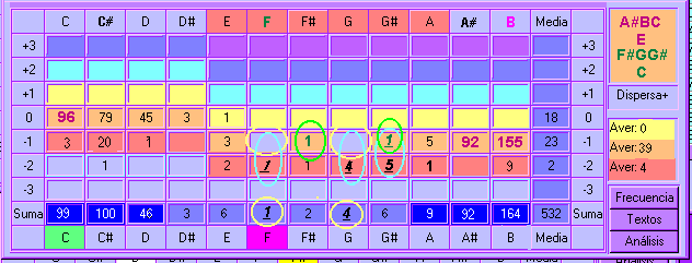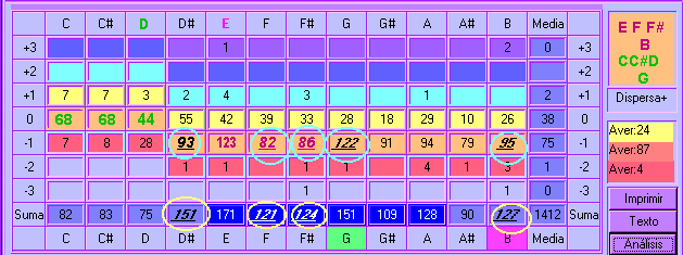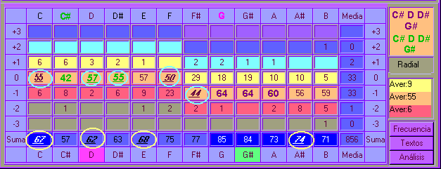 MAS BAJO EN NÚMERO Y LAS OTRAS 6 NOTAS CONSECUTIVAS MAS ABADANTES