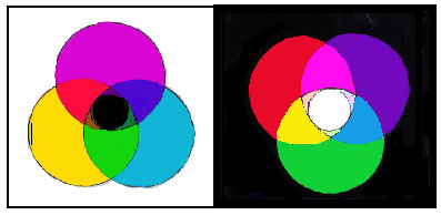 Mirando este gráfico realmente podemos ver y darnos cuenta de la apertura de los colores RGB encima del fondo oscuro y el cierre de los colores de CMY encima de la luz de fondo. Esta ley de la refracción siempre ocurre a menos que otra radiación de la fuente de luz del propio objeto tiñe el color radiado a algo más. Así podemos explicar por qué el cielo es azul en la luz del día y por qué se pone rojo al alba y a la salida del sol cuando la fuente de luz del sol está detrás de la oscuridad de la tierra.