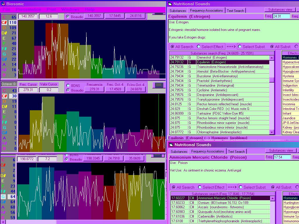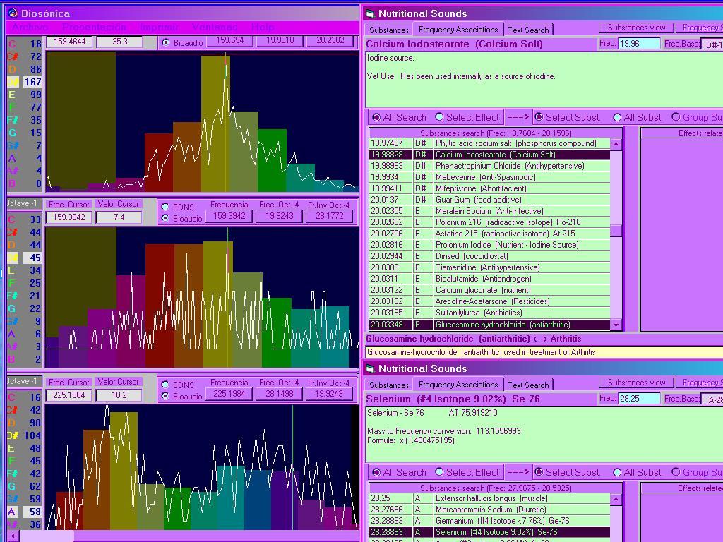 @ RELACIONAR LAS FRECUENCIAS A LA NATURALEZA ATÓMICA DE NUTRIENTES. Con la Base de datos de Sonidos Nutricionales. Las frecuencias que son mas mencionadas son importantes si estas son de un tóxico, pero quizá están quitando la energía a su frecuencia inversa que podría ser un nutriente necesario. Ésa es la razón por lo qué es conveniente estudiar las frecuencias y sus frecuencias inversas. Siempre estudiar una frecuencia y su inversa en la base de datos NS.