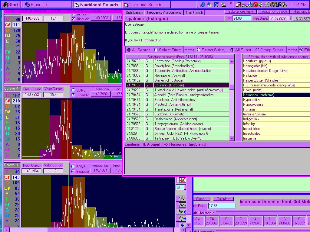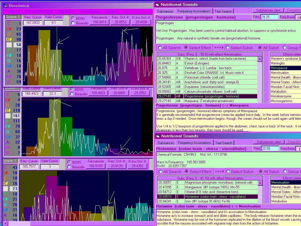 En el primer ejemplo nosotros vemos las frecuencias del estrógeno que son el lo inverso de la frecuencia alta en C #, y cómo se relaja a los tiempos diferentes en el mismo día. Realmente sintiéndose primero mal, la náusea, se angustian con la bilis en el estómago, el dolor de cabeza, la tendencia a las migrañas.