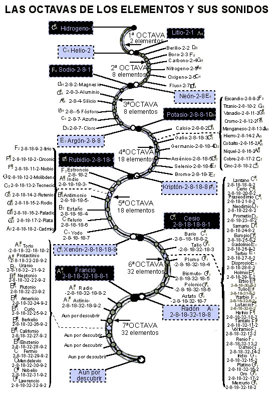 La naturaleza real de las octavas de sonido es unas espiral, y cómo vamos desde sonidos de frecuencias bajas hasta las frecuencias rápidas de la luz, es una espiral.